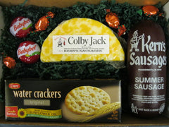 Products are displayed neatly in a gift box with a card enclosed from you. Cheeses and candies may be substituted with similar products of equal value when those items are unavailable.
