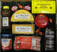 Products are displayed neatly in a gift box with a card enclosed from you. Cheeses and candies may be substituted with similar products for equal value when those items are unavailable.